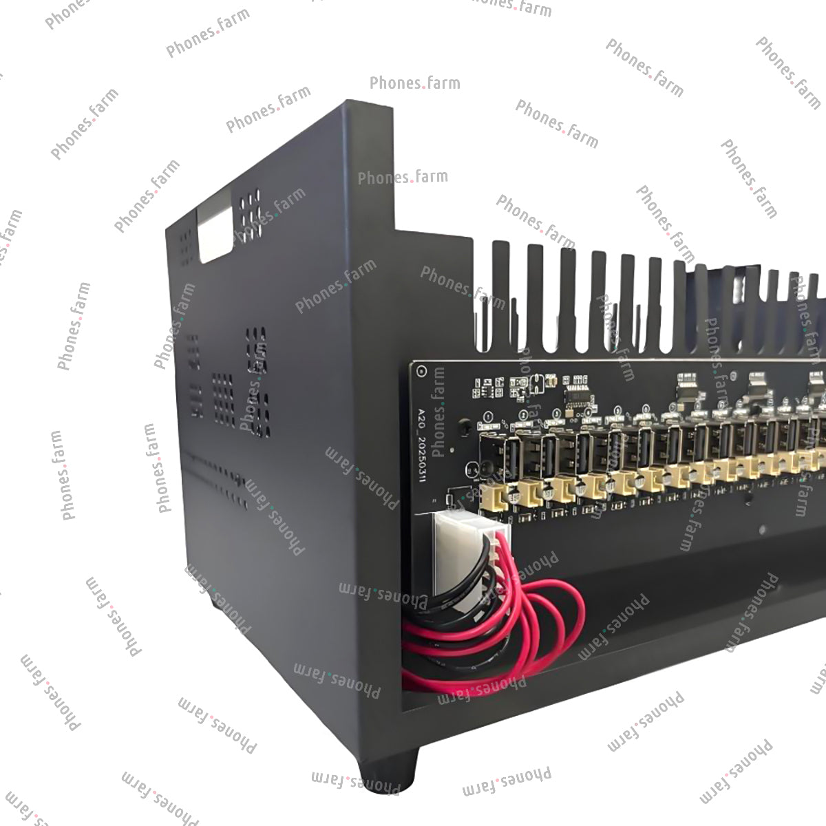 - Chassis integrated with 20 USB ports, it can simultaneously connect and manage up to 20 devices and provide unified power.